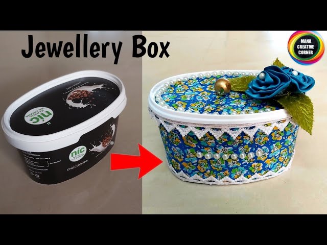 DIY Jewellery Box from waste material #Bestoutofwaste Icecream box reuse idea #waste material reuse #Jewellerybox